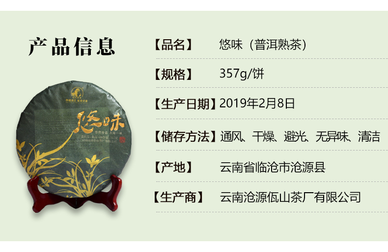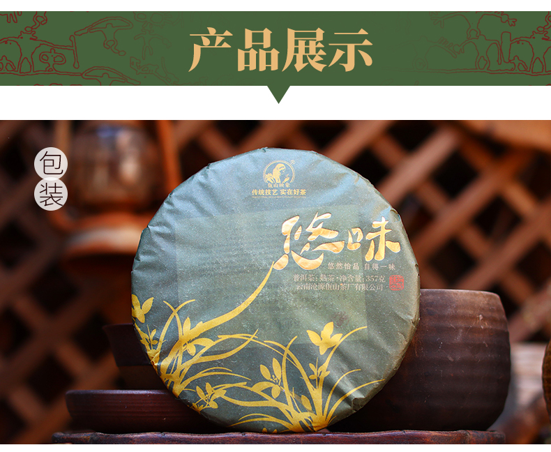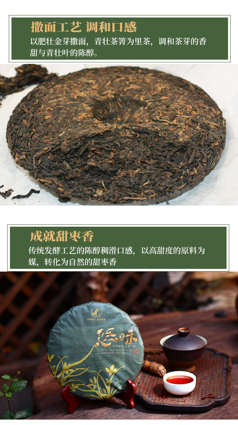 云南普洱茶茶叶普洱茶熟茶 甜枣醇香口粮熟普洱熟茶饼茶 悠味357g