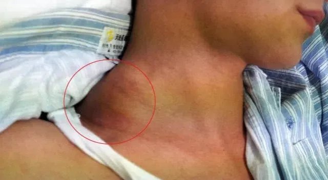 其实魏尚子的胎记在 2017 年就有长大的迹象,当时父亲带着他去了一个医生朋友那里做了切除手术,朋友建议把切下的组织送往郑州做检查,并不在意的父子想着不就是个胎记吗,能有啥事 ? 后面再发现胎记长大时,曾经跑几十里地找民间医生用土方当作“老鼠疮”来治疗,甚至在医生用针管从肿大的胎记中抽出一针管血水时,他们也没想到这个胎记有一天会恶化成“癌”。图为魏尚子右肩处的胎记,目前已经形成六七厘米大小的肿块。