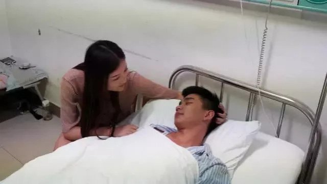 目前,因为一个不起眼的胎记而罹患恶性黑色素瘤的魏尚子还在医院救治,从确诊至今家里已经花去了十几万元的治疗费,第一个疗程还未结束。医生说因为肿瘤长在颈部大动脉上,手术风险大,只能依靠全自费的靶向药治疗,而一盒药就要 8000 多块钱,整个疗程需要 50 万元左右,但是看到尚子在吃药后,肿起的疙瘩明显变小,疗效显著,这给全家人带来了希望。“我家就这么一个独子,不管再困难,也一定要与死神赛跑,为孩子求得生存机会。”妈妈尚士先说。图为魏尚子年轻的妻子在病床前安慰他。
