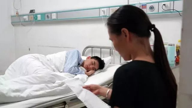 魏尚子家住偏僻的淅川县盛湾镇蚂蚁村,三代单传的农村人对他这棵独苗的疼爱程度不言而喻。这几年,爷爷、太奶奶先后离去,家里欠下了不少外债,为了还债父母一直在外地打工,去年家里人借了亲戚家的钱,付了首付款才在淅川县城给魏尚子买下了一套小产权房,给他举办了结婚仪式。原本以为每月 2000 多的月供有一家人共同努力,用不了几年就可以还清,却没想到半年时间家里就发生了天塌地陷的大事。图为今年正月才结婚的妻子周俊雅在病床边陪护着魏尚子。
